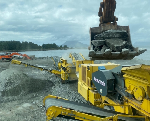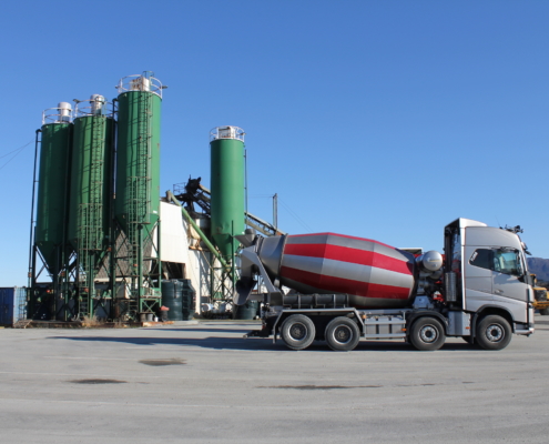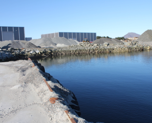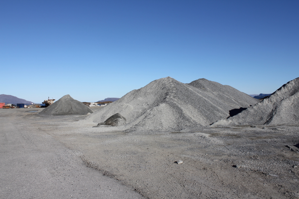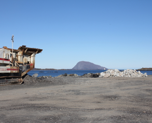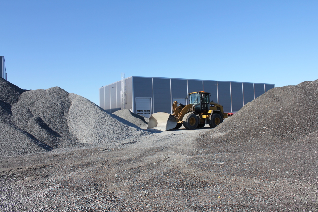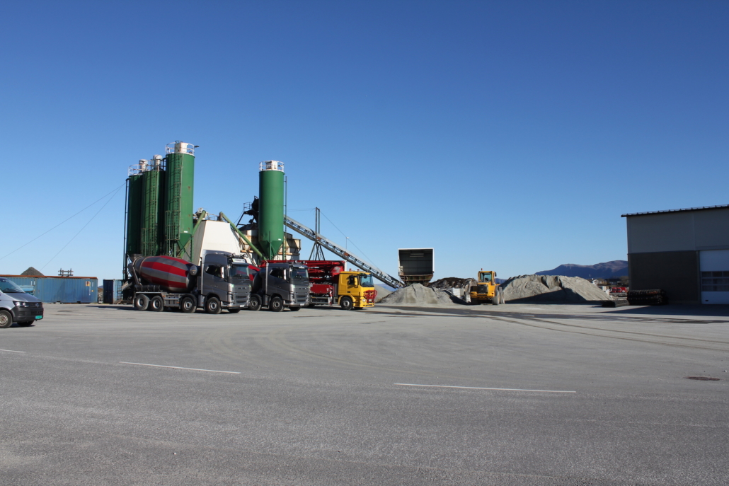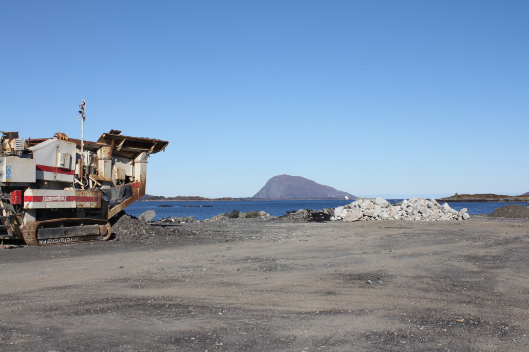Vi produserer eigne massar som grus, singel, pukk, sand og sortert jord. All overskuddstein som vi skyter fra ulike prosjekt blir kjørt ned hit og knust opp med eit knuseverk, videre sortert i eit sorteringsverk.